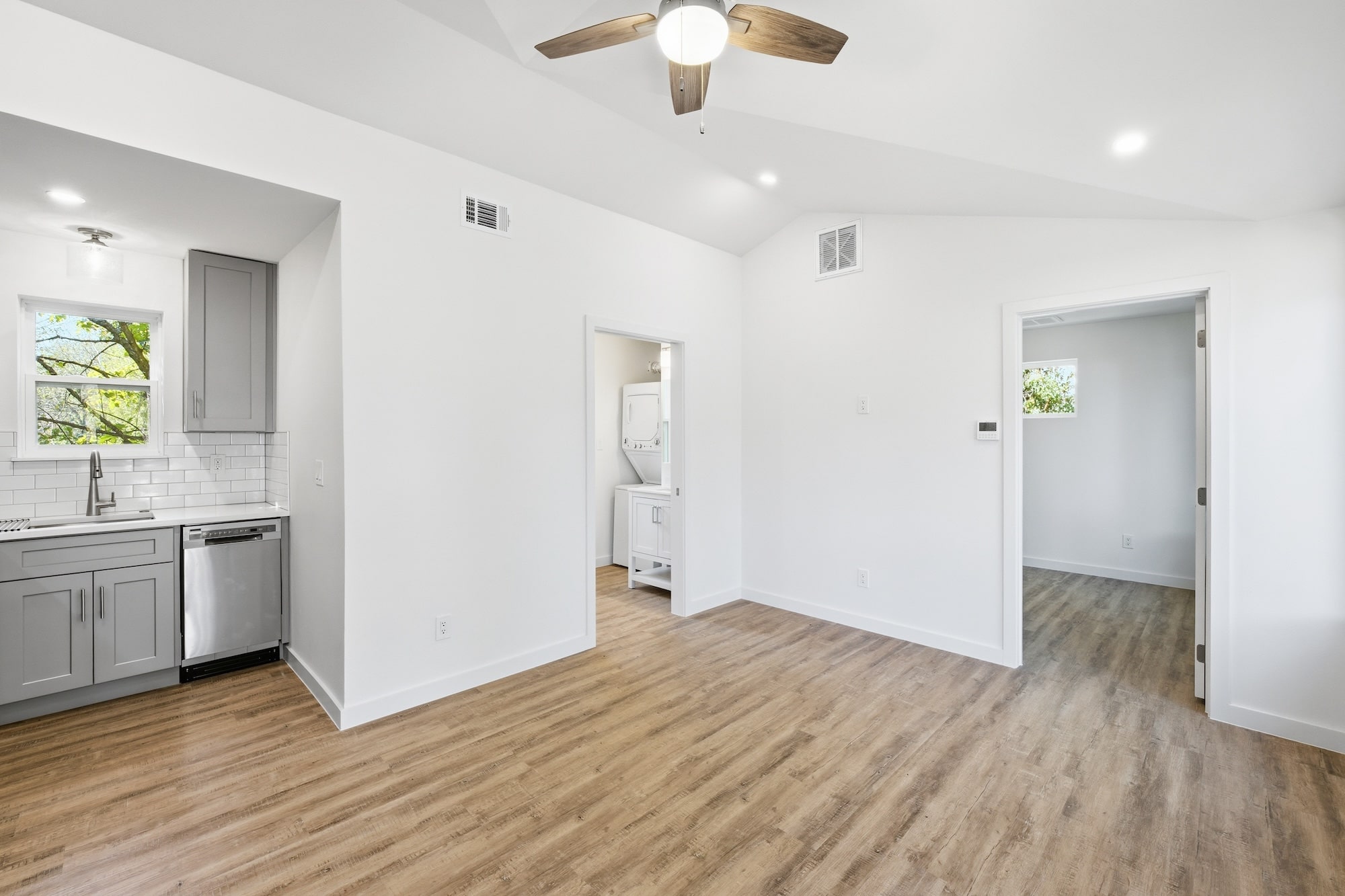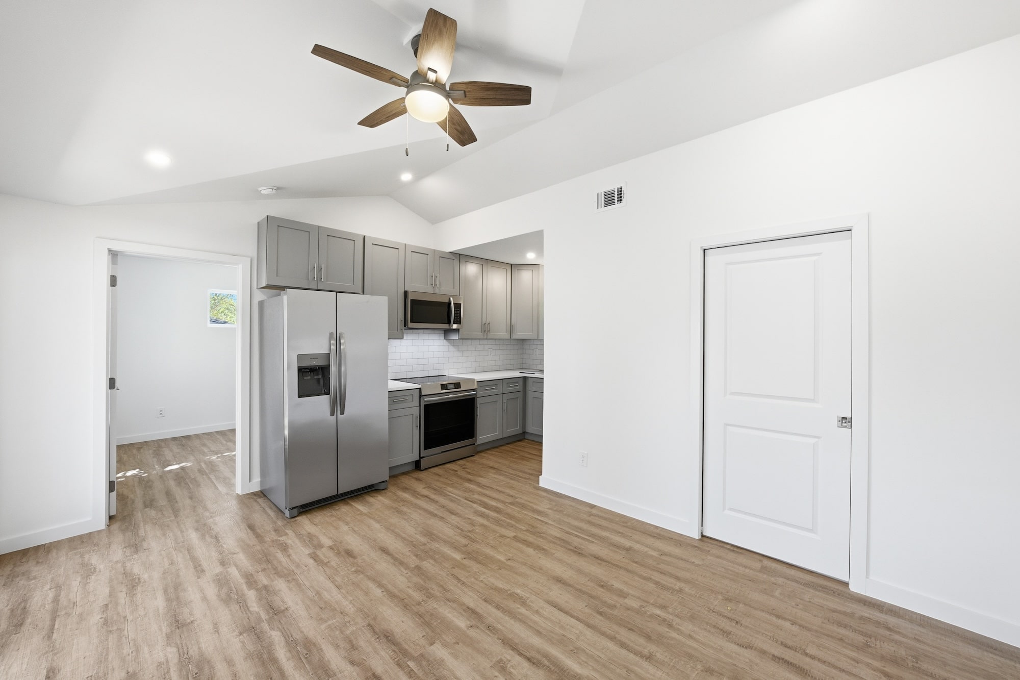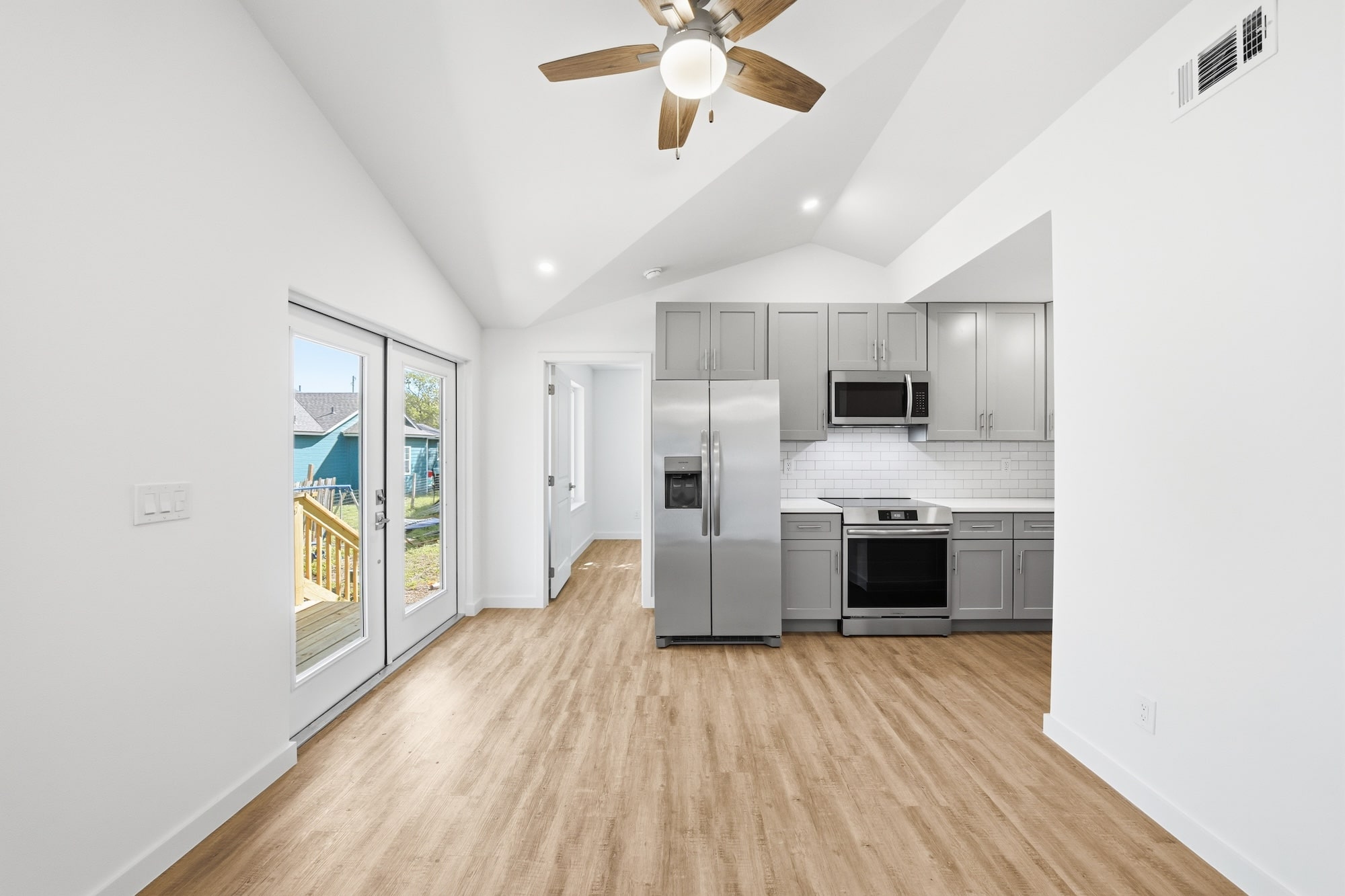 Valuted Ceilings, Hardie Lap Siding, Patio Deck, Transom Windows, French Door, Quartz countertops, Upgraded Appliances